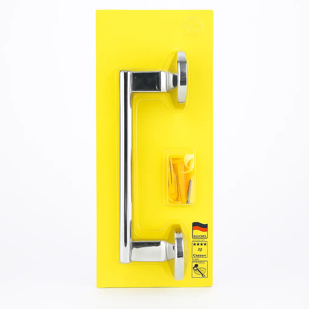 Stijlvolle handdoekhouder met een glanzende chroomafwerking.