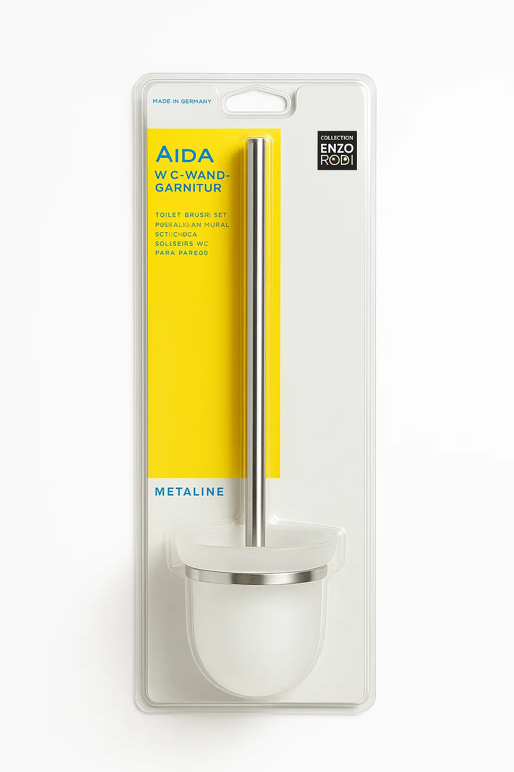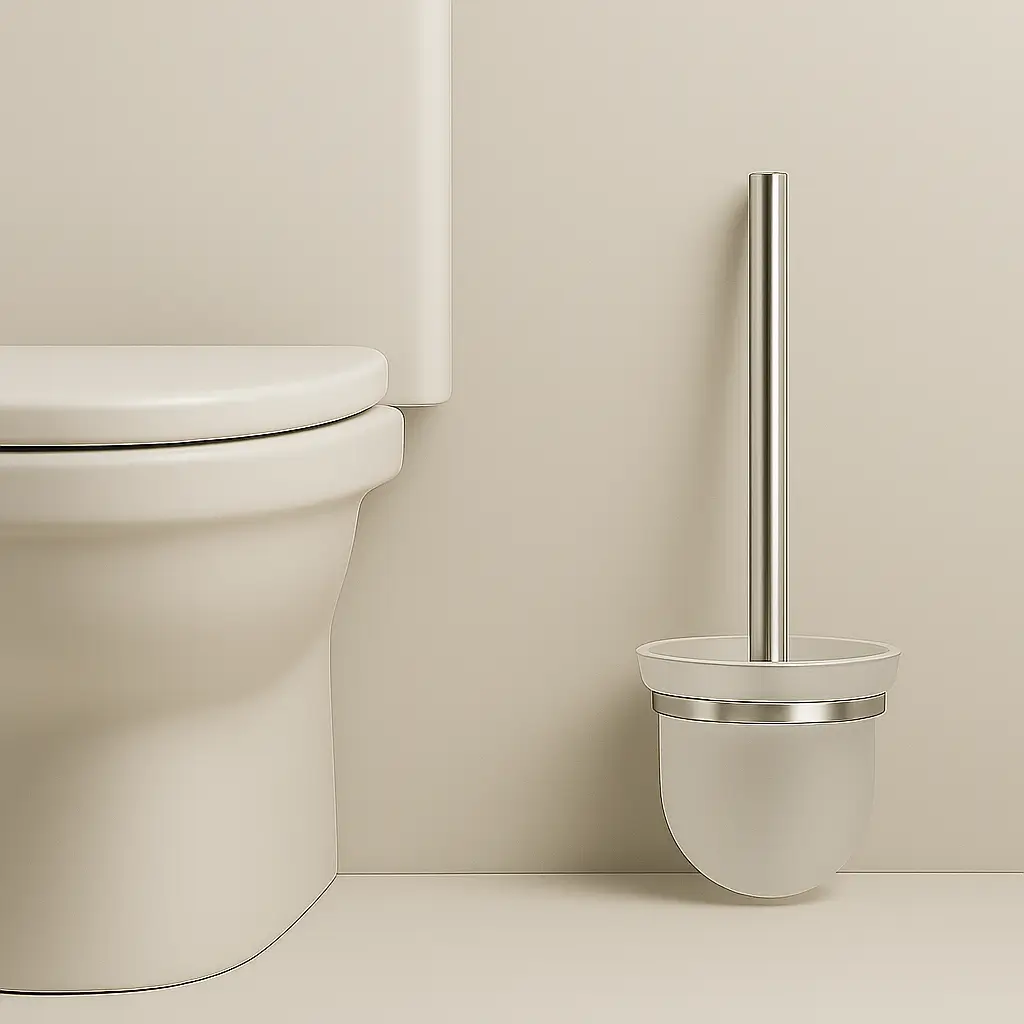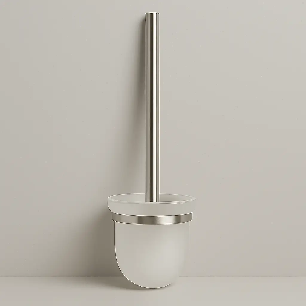 Ruim model wandtoiletborstelhouder met een strakke chroom afwerking en wit borstelreservoir.