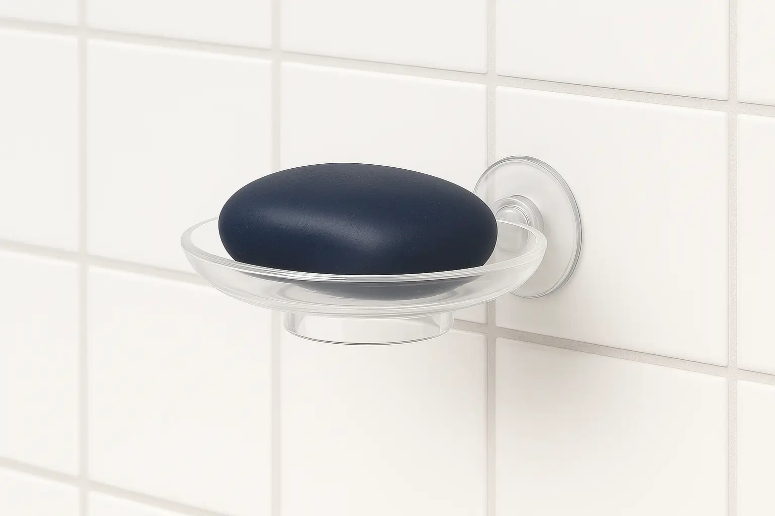 Handig en strak zeepbakje met zuignap – perfect voor wie geen gaten wil boren in de muur.